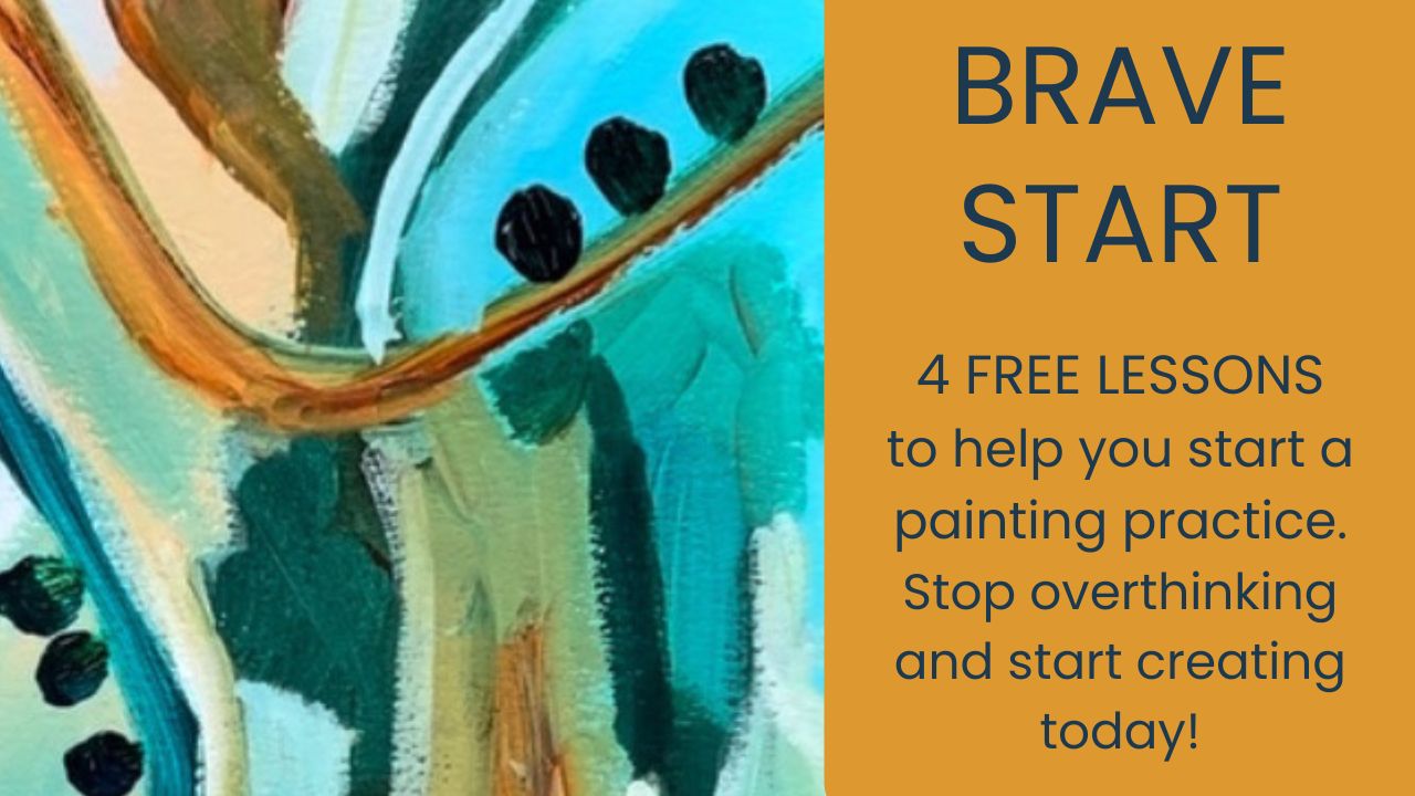 Brave Start is your invitation back to creativity. In four encouraging videos, I’ll help you let go of perfection and make your first mark, reconnect with your creativity—no art degree required—create a painting practice that fits into your real life, and learn to show up for yourself and your art. This isn’t about doing it perfectly. It’s about being brave enough to begin.